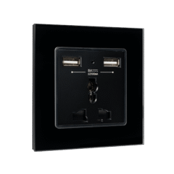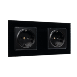Elmark Πρίζα Τύπου Schuko Διπλή 16A Με Γυάλινο Πλαίσιο Μαύρο + Κουτί (195026CC/BL)
