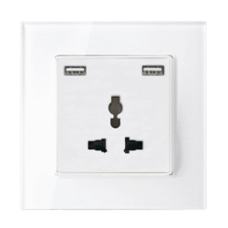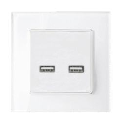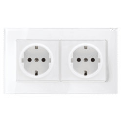 Elmark Πρίζα Τύπου Schuko Διπλή 16A Με Γυάλινο Πλαίσιο Λευκό + Κουτί (195026CC/WH)