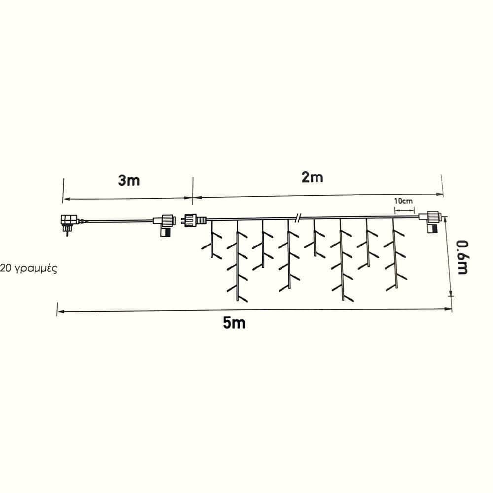 100 Χριστουγεννιάτικα Λαμπάκια Βροχή 2m x 0.60 Θερμό Λευκό Επεκτεινόμενα