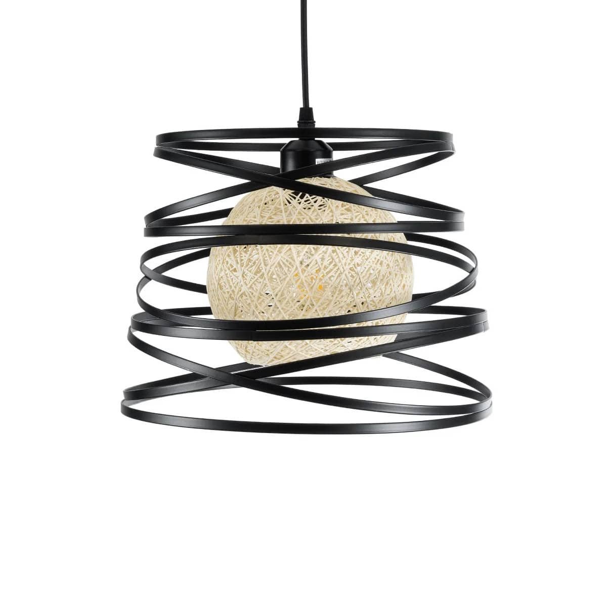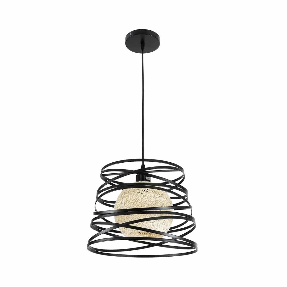 100070 NORDIC Κρεμαστό Φωτιστικό Οροφής Μονόφωτο 1xE27 Μεταλλικό Μαύρο με Μπεζ Ratan Μπάλα Φ32 x Υ24cm