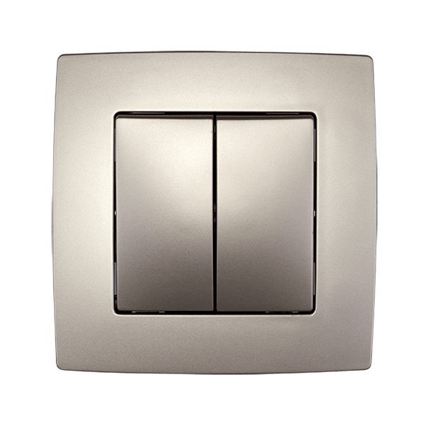 Διπλός διακόπτης τύπου αλέ-ρετούρ (СХ.6) από τη σειρά CITY της Elmark, σε σαμπανιζέ μεταλλιζέ απόχρωση. Ιδανικός για εφαρμογές που απαιτούν έλεγχο φωτισμού από περισσότερα του ενός σημεία, με κομψή και μοντέρνα εμφάνιση που ταιριάζει απόλυτα σε κάθε χώρο.