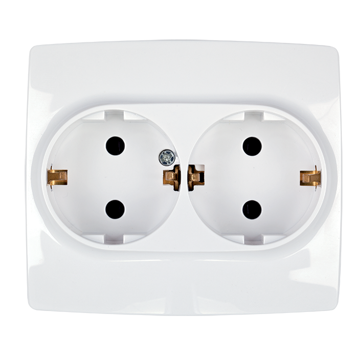 Διπλή πρίζα σούκο της σειράς CITY από την Elmark, με λευκό μεταλλιζέ φινίρισμα και βίδα στερέωσης. Κλασική επιλογή για διπλές παροχές ρεύματος με στιβαρότητα και κομψότητα.