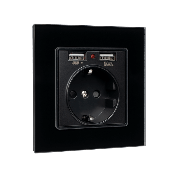 GERMAN TYPE SOCKET 16A 2XUSB GLASS FRAME BL+C. BOX