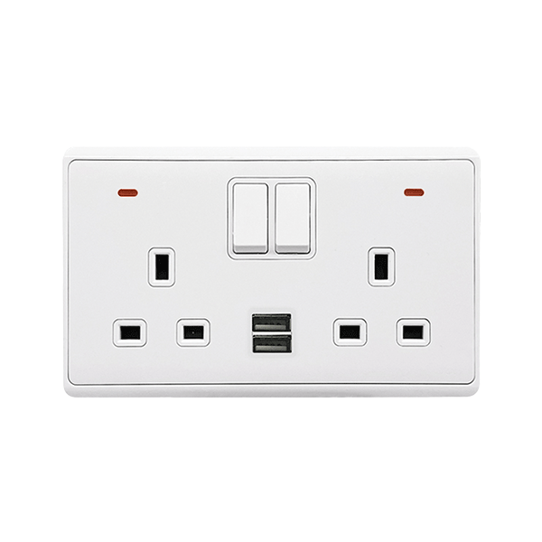 LONDON DOUBLE SOCKET 2P BUTTON SWITCH NEON+USB WH