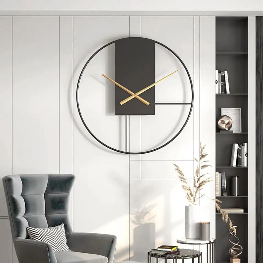 Ο μοναδικός και αφηρημένος σχεδιασμός του διαθέτει έντονα γεωμετρικά στοιχεία και χρυσούς δείκτες που ξεχωρίζουν πραγματικά από τη μεγάλη διάμετρο του ρολογιού των 53 cm.