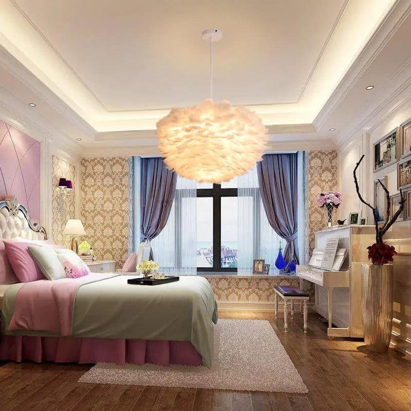 Ρομαντικό, ιδιαίτερο φωτιστικό με πούπουλο για την τραπεζαρία, υπνοδωμάτιο, εκθεσιακούς χώρους και ξενοδοχεία | Φωτιστικά για όλους τους χώρους | Βρείτε τις καλύτερες τιμές σε πολλά σχέδια